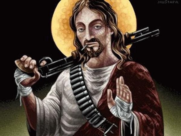 Blessed are the heavily armed, for they shall fuck up anyone who gets in their way.