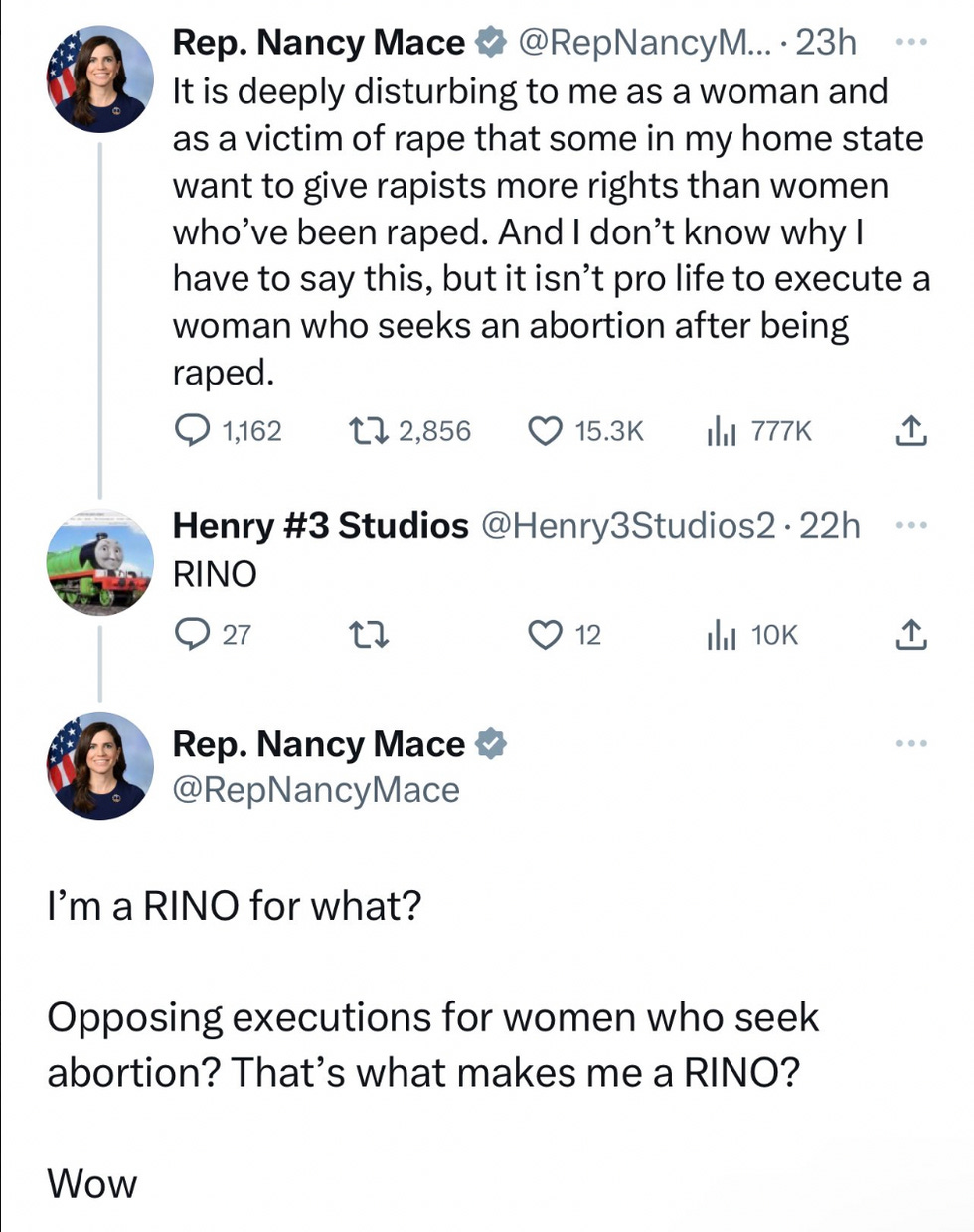 "It is deeply disturbing to me as a woman and as a victim of rape that some in my home state want to give rapists more rights than women who’ve been raped," Nancy wrote . "And I don’t know why I have to say this, but it isn’t pro life to execute a woman who seeks an abortion after being raped."