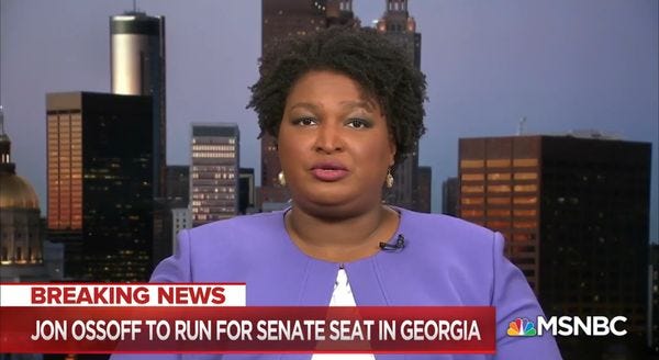 We wish Abrams would run for Senate herself but she's busy making sure Republicans don't bring back the poll tax. However, former House candidate Jon Ossoff has set his sights on one of the vacant Senate seats. See , it is physically possible for a Democrat to run for Senate.