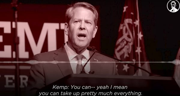 Rather than giving likely Charlie Kirk clone a definitive answer, Kemp demurred and said simply, “You could take up pretty much anything, but you got to be in the legislative session to do that ... I think, I’d have to check and see because there are a lot of legalities.”