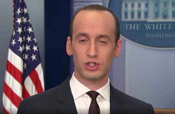Forget about the whistleblower story about Donald Trump probably committing literal actual treason, because there is more important news out there, and it is that unfuckable Trump sycophant mini-Hitler baldhead dork who makes "34" look like a really rough "60" Stephen Miller IS REPORTEDLY BONING A HUMAN PERSON! And this reportedly human person is ALLOWING THAT.