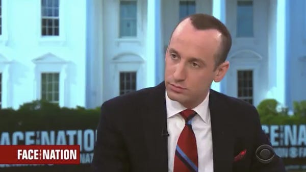 Appearing on CBS's "Face The Nation," it seems that with his old partner in xenophobia (John Kelly) gone, Miller came to once again impress his audience of one. Host Margaret Brennan began by asking about a Texas l judge's decision to strike down the entire Affordable Healthcare Act (ACA):
