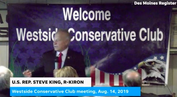 Of course, the audience at the Westside Conservative Club was receptive to King's speech because they are also terrible.