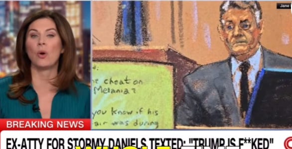 Court resumes at 9:30 Thursday morning, with more contempt, more Keith Davidson, more Trump naps, and more surprise witnesses! Can’t wait! In the meantime today Trump is headed to Wisconsin and Michigan, to try to win over whoever is somehow still undecided by saying what will surely be some very stable genius words.