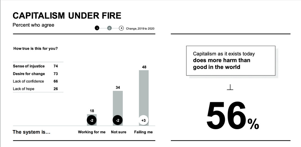 According to Edelman's 2020 Trust Barometer, not only do most people feel as though the rich keep getting richer while everyone else gets screwed, they're also not all that fond of capitalism in general anymore. In fact, 56 percent of the world thinks capitalism does more harm than good.