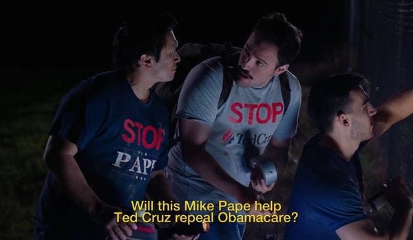 ThinkProgress calls the ad "disturbing," but that appears to be more of a political than an aesthetic judgment; we think it's gloriously terrible, and that everyone involved in its production deserves a contract making ads for furniture stores or accident injury lawyers. ThinkProgress did at least find an actual Mike Pape quote, which suggests he knows how to feed the wingnut audience: