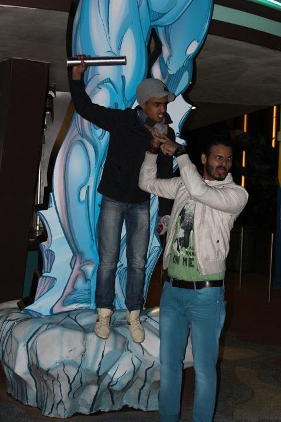 Our favorite Hoft CSI analysis is his caption for this photo. You might think you see two guys goofing in front of a cutout of some superhero dude: