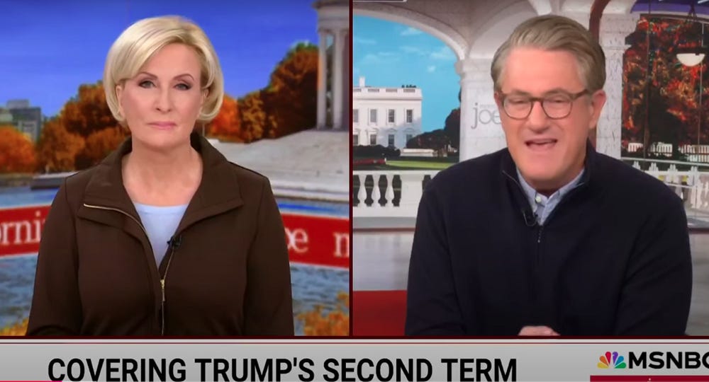 We can also say we give it until Christmas before Trump proudly announces on TruthSocial that Scarborough and Brzezinski have committed the unforgivable sin of not sucking up to him lavishly enough, so now he hates them again.