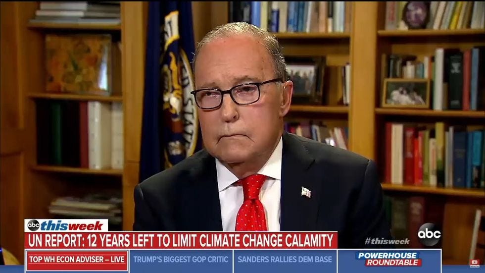 Speaking of people who will not do anything on climate change if it in any way affects the economy (even if it kills us all), Trump's economic advisor and sad emoji Larry Kudlow appeared on ABC's "This Week with George Stephanopoulos."