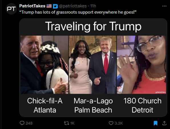 As PatriotTakes on Twitter also pointed out, some of the Black people in attendance were racking up frequent flyer miles.
