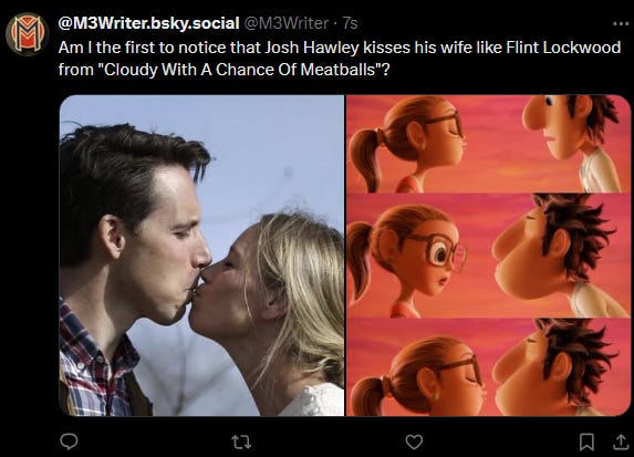 Smoother than Josh Hawley kissing a human, Tim.