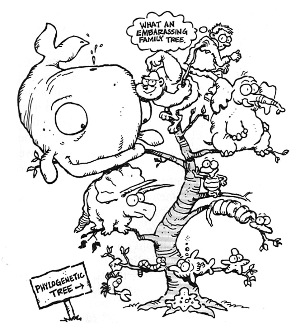 Those wacky evolutionists! They use illustrations to lie! And even with their crazy speculation, Pinkston says, "there is little agreement among evolutionists about which organisms are the ancestors." The thing is just a silly matching game, because for some strange reason, there are a lot of similar features among species, but they are also very different from each other, because God made them that way: