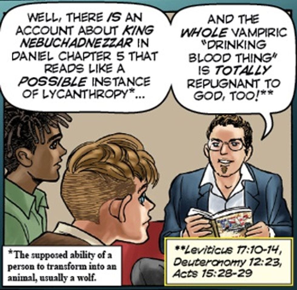 Ah, but what about monsters and vampires and werewolves? They're not in the Bible, are they? Can you dress as a werewolf? Would that then be a sin then, Fadduh? ( 2 Carlin 2: 4 ). Hey, everything's in the Bible if you read it right: