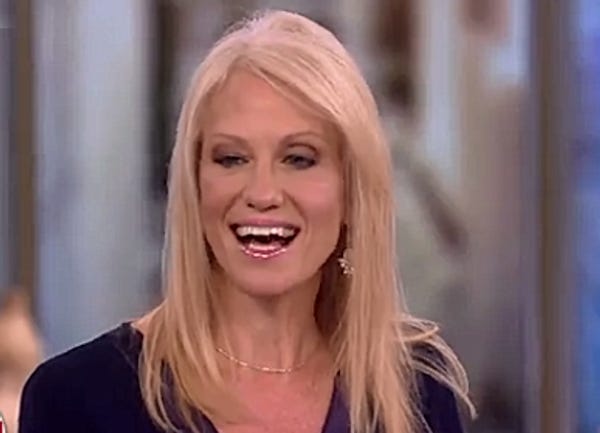 Any-hoo, read the whole Newsweek thing if you want to, but right now it's time to make fun of Kellyanne Conway completely confirming all of this on "The View," like a good little campaign surrogate: