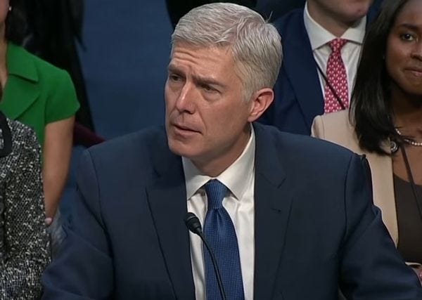 So now that we're finally getting to the questions, what can we expect to come up during Gorsuch's hearing today, beyond the basic stuff about how he shouldn't be sitting in a confirmation hearing in the first place? In addition to the usual abortion-guns-campaign finance-affirmative action stuff that you'd expect in any hearings, there's likely to be a focus on Gorsuch's supposed adherence to the impossible doctrine of "originalism," which requires judges to apply the Constitution as they believe the Founders would have intended. In practice, this amounts to pretending the Founders would have had thoughts about surveillance of cell phone networks, modern medical and financial practices, and women and black people having rights.