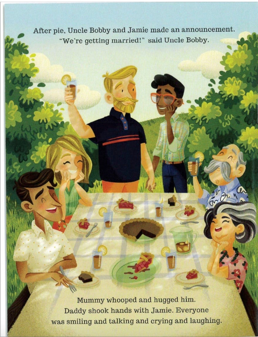 The storybooks present same-sex weddings as occasions for great celebration and suggest that the only rubric for determining whether a marriage is acceptable is whether the individuals concerned “love each other.”
