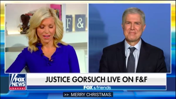 Supreme Court Justice Gorsuch Goes On 'Fox & Friends' To Do War On War On Christmas