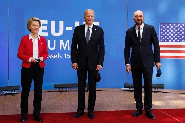 "We are very pleased, dear President, dear Joe, to welcome you again in Brussels,” European Council president Charles Michel of Belgium told President Joe Biden today. “Your presence here and your participation in this European Council meeting is a very strong signal.”