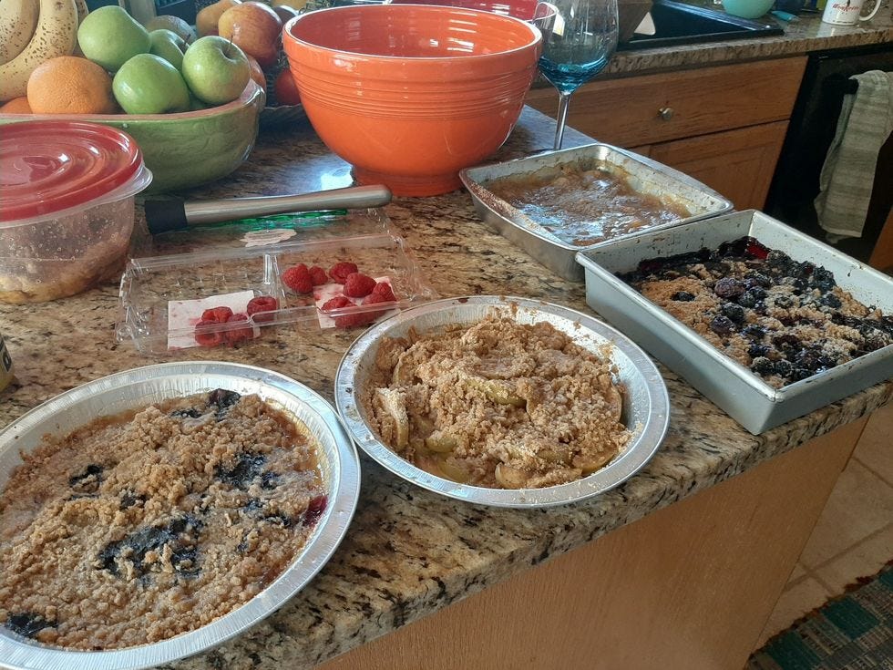 Yestertoday I made the following crumbles (fruit topped with brown sugar, flour and butter in basically equal parts, NOT OATS, those are CRISPS):