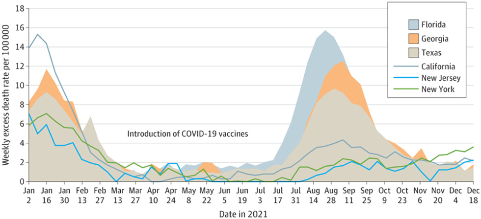 Excess deaths by state, 2021: