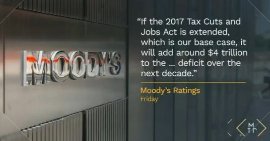 On NBC, they showed this graphic where Moody’s explicitly cites the Trump tax cuts extension as part of its decision, but Bessent just repeated the same lie.