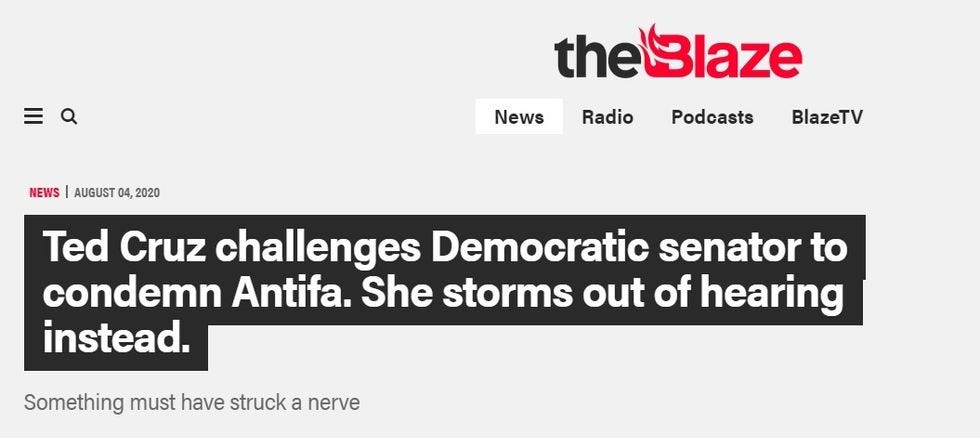 Cruz twice castigated Democrats for saying nice things about Black Lives Matter while refusing to condemn the infinite crimes of antifa, or even speak up against the "terrorists" who murdered federal security officer Dave Patrick Underwood and Sheriff Sgt. Damon Gutzwiller during protests in Oakland back in May. Mind you, those two killings weren't perpetrated by "the Left," but by a far-Right "boogaloo" enthusiast, US Air Force Sgt. Steve Carillo, who had hoped to start a second civil war and blame it on antifa. Carillo didn't get his civil war, but he sure was successful getting folks on the Right to blame his crimes on antifa and Black Lives Matter protesters.