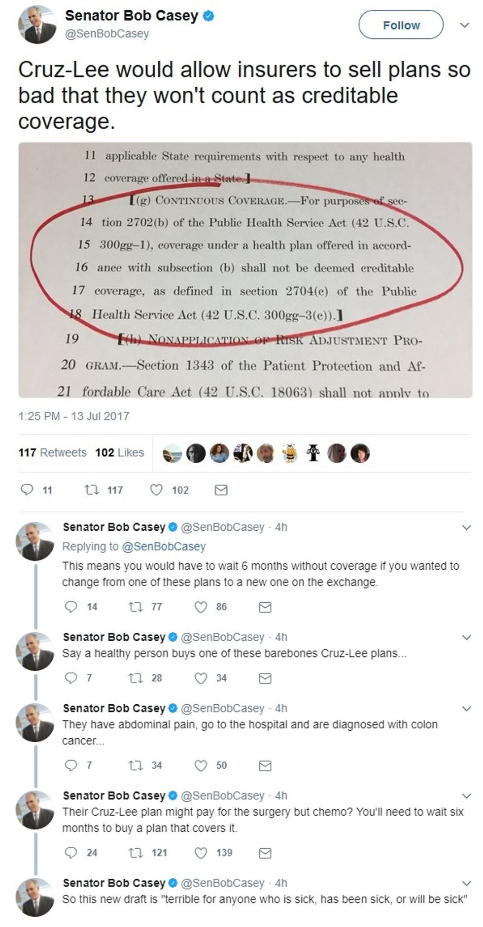 UPDATE: A point from Bob Casey'stwitter thread that also needs to be emphasized: People buying the unregulated plans will be considered "uninsured" as far as the standard of maintaining actual insurance coverage is concerned: