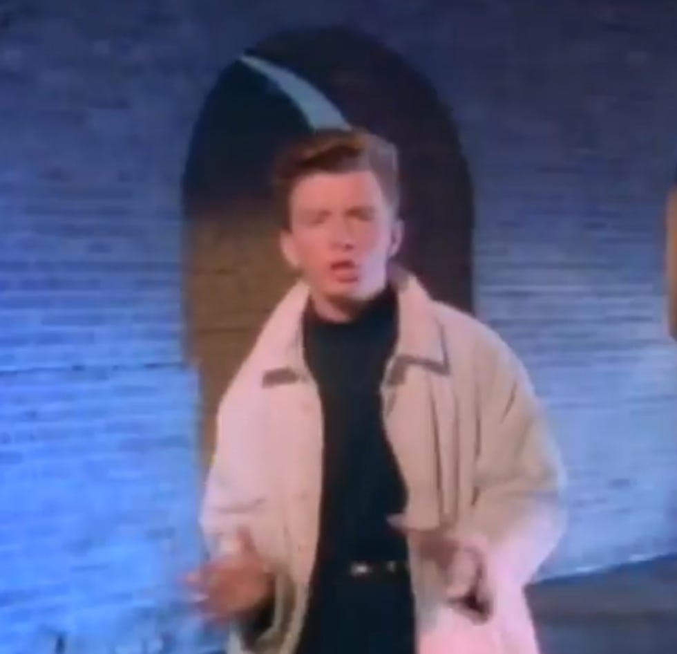 You get it? It is Rick Astley singing his famous hit tune "Never Gonna Give You Up!" This is a common #joke on the internet called Rick-Rolling. If you are one of those people who doesn't get jokes because you don't understand things, how it works is people make a video that says one thing, and then after that the song plays and it means you have been pranked and UR DUMB and YOU FELL FOR IT and then everybody in the world is murdered to death by gigglegasms.
