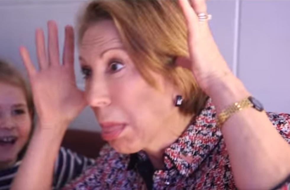 Blah blah blah, more video footage of frumpy white people being sad, OH LOOK, IT IS CARLY FIORINA! She is showing off her "silly" side in this picture, we think. Man, what a historic nine days that was, when she was Ted's running mate. America, this could have been your new Joe Biden: