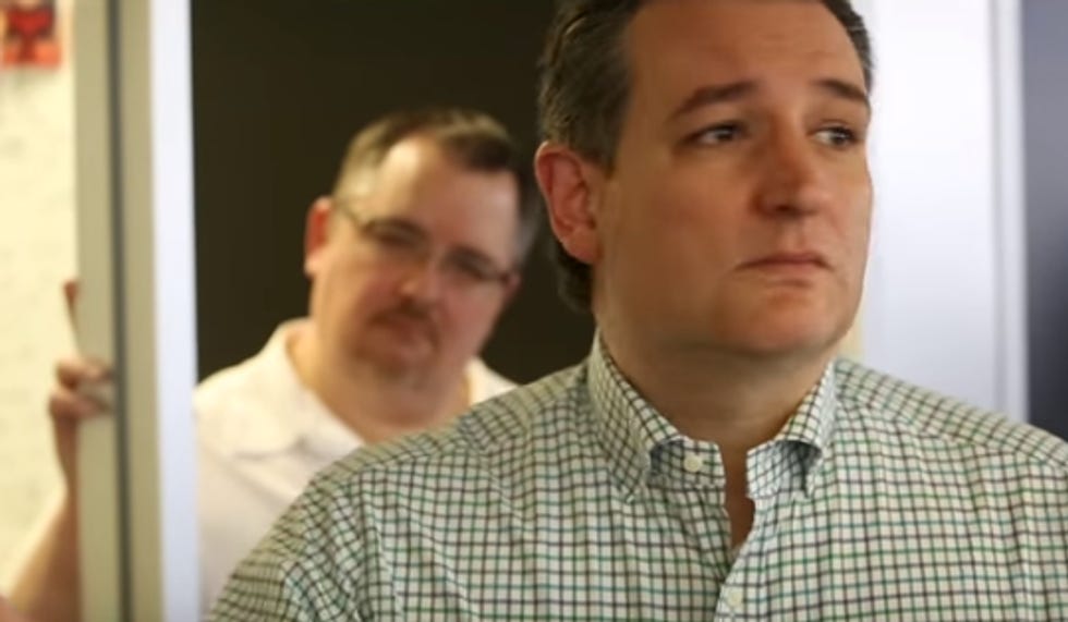 Do you want to watch an interminable bye-bye video from Ted Cruz about how his campaign was just the most honorable thing ever, which features white wingnuts crying salty jizz tears at each other about how it's so sad Ted Cruz didn't get elected as our new Jesus? No, you would not be into watching that? We hear you saying you want Wonkette to watch that video for you and find the funny parts, and post pictures of them, so we can all punch Ted Cruz in his dumb face for no reason on this lovely Tuesday morning, is that accurate?