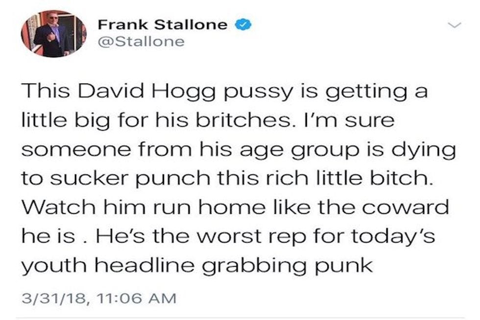 Frank Stallone, Sylvester Stallone's brother that we all forgot existed, posted a thing on Twitter about how much he imagined David Hogg's peers would like to punch him in the face.