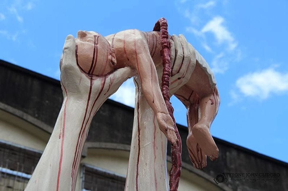 So far, there has not been any discussion on what the monument will look like. Will it just be one giant fetus, or a big pile of them? Maybe something extra bloody like this classy anti-choice statue in the Philippines?