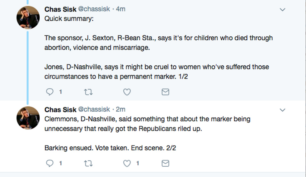 The bill is sponsored by Rep. Jerry Sexton, R-Bean Station, and Sen. Steve Southerland, the two lawmakers who previously attempted -- unsuccessfully -- to make the Bible the official state book of Tennessee. They claim that the statue is meant to honor all the babies what never survived, because of either abortions or miscarriages.