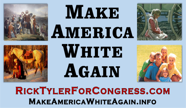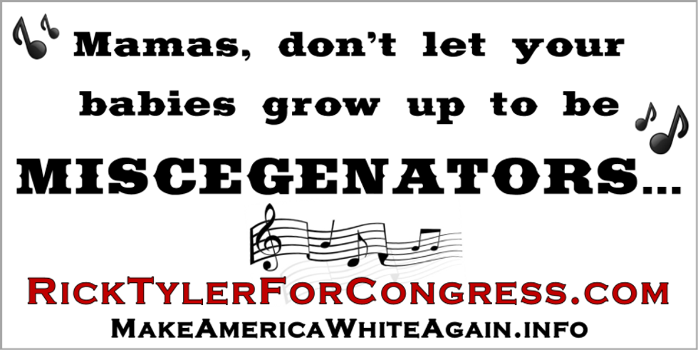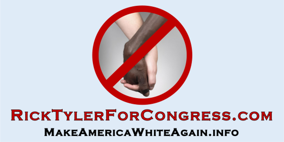 Tyler, who is running as an independent candidate, put these billboards up around Polk County, TN (the "Make America White Again" one was removed by the billboard owner's wife), where they did not actually go over very well with much of anyone, besides Rick Tyler, who is a weird and sad man. He believes people love them and agree with him.