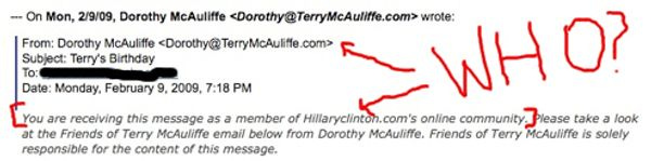 MORE THAN EVER should you now regret signing up for Hillary Clinton's 2007-08 campaign mailing list -- which you all did, because you looooove her -- because guess who's hijacked it now? Terry McAuliffe, in his random run for Virginia governor. Curse you Terry!