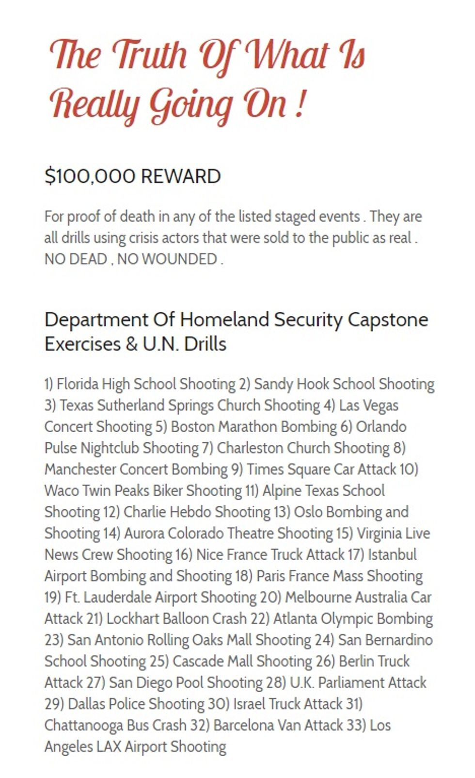 In the immediate aftermath of the shooting, I amused myself posting a few comments on a "false flag" y@utube video. At first, one of them tried to convince me by quoting an article from Neon Nettle, familiar to me for promoting pizzagate, which accused al Jazeera of reporting the shooting before it happened. I pointed out that an authentic AJ article had an appropriate date, mentioned no earlier report and dismissed them as nuts without taking any notice of their accusation. I was also able to list a good deal of hardware the nuts would need to have a chance against a military force that they already can't get by remotely legal means. That annoyed them enough to call me a gov't plant and ignore me.