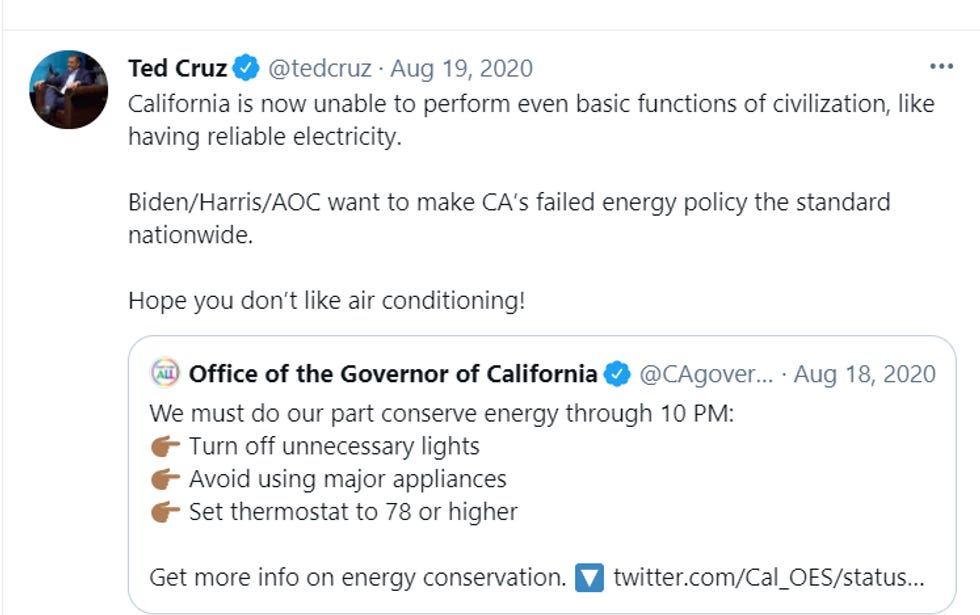 And before Texas Republicans start falsely blaming the outages on wind and solar again, the Texas Tribune reports that 80 percent of the power plants that are currently out of service are "thermal power sources" — which in Texas means natural gas, for the most part, since the state has largely moved away from coal as it's gotten more expensive.
