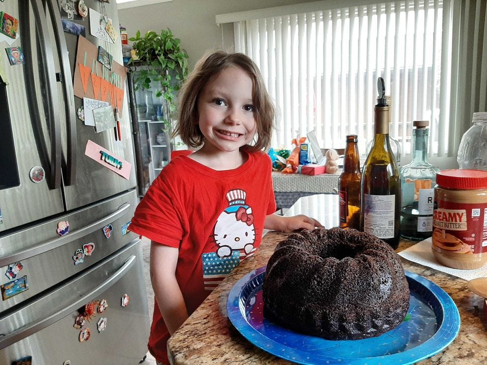 First have your good stepson catch a trout. Then have him smoke the trout. Then have him make this trout dip. Also, the (second) cake turned out a treat!