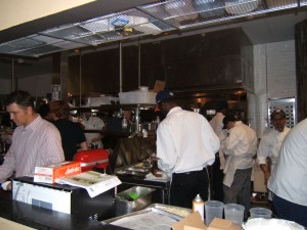At the Beer Palace, only men work in the kitchen, and they make such fancy items as octopus, truffle, grilled cheese paninis, and mac and cheese on a stick, which qualifies as fancy because it costs $12.