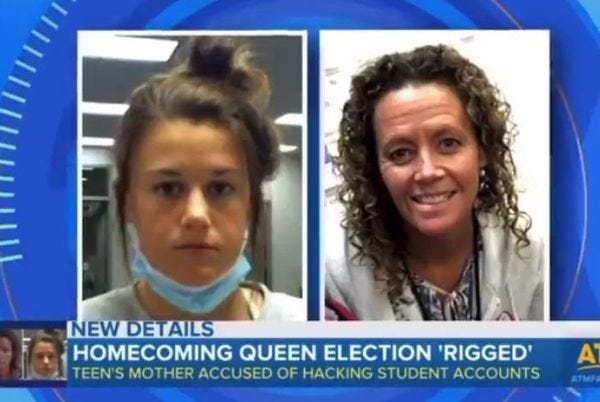 In another data point arguing for the replacement of human beings by elephants or maybe manatees as the planet's top species, a Florida teen and her mother are facing multiple felony charges after breaking into student computer accounts to rig an election for high school homecoming queen.