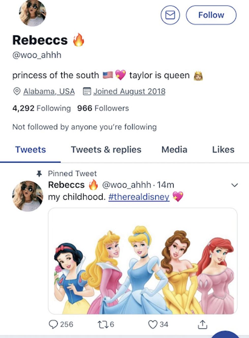 "Rebeccs" started out as a cool white chick wearing John Lennonish glasses who lives in the South and loves Taylor Swift, so far so good. Rebeccs, seems to have a problem with Disney.