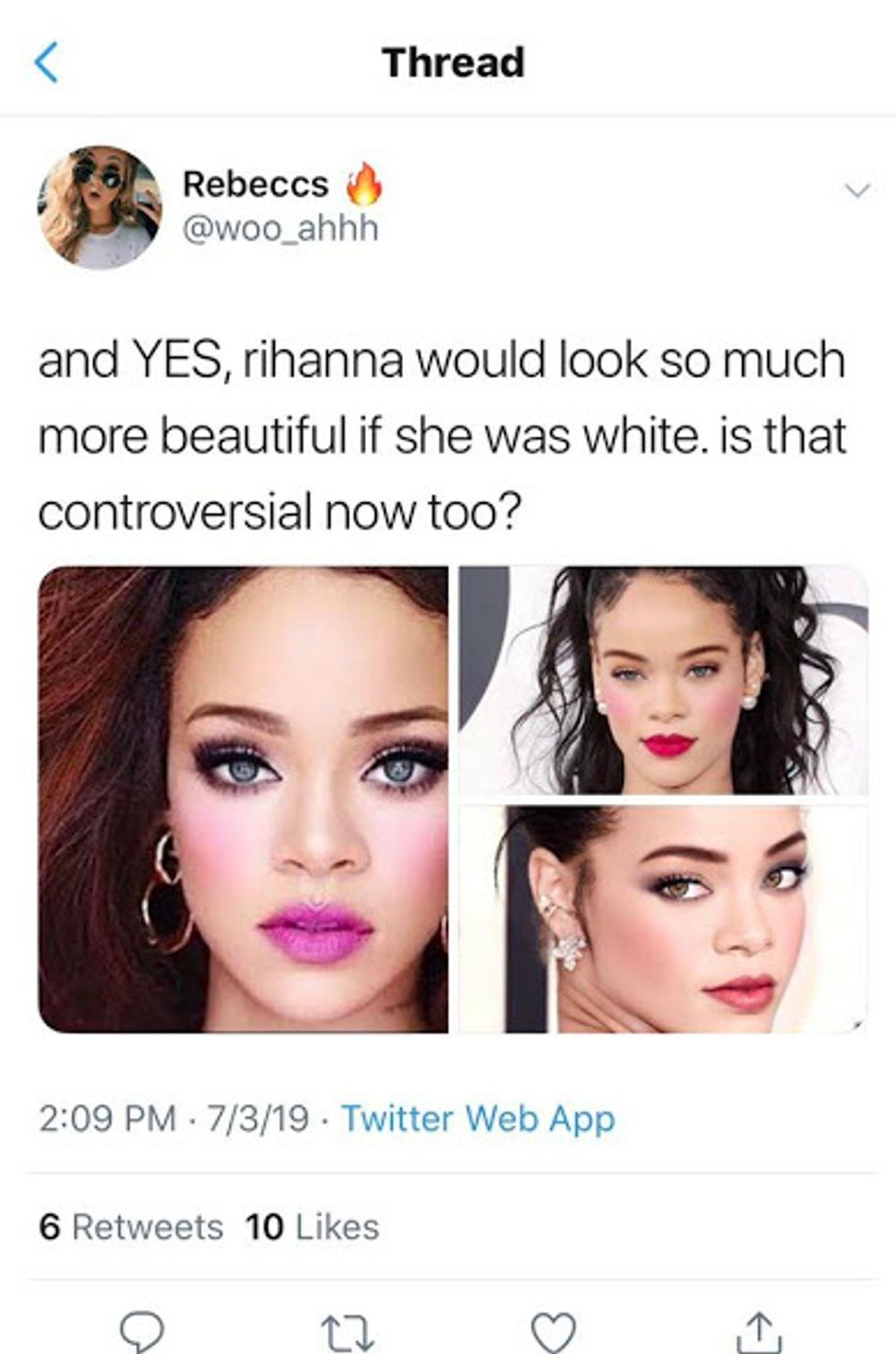 Once Black Twitter began to destroy "her" soul through schadenfreude and mockery, she broke down, went full "Battle Flag Nazi" and slighted Rihanna like she lost her damn mind.