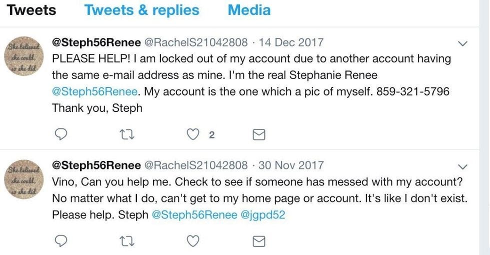 Here is the real Stephanie, who uses her old twitter @ as her screen name, probably as a form of protest against that asshole who is tweeting in her name while Twitter most likely does absolutely nothing at all to help.