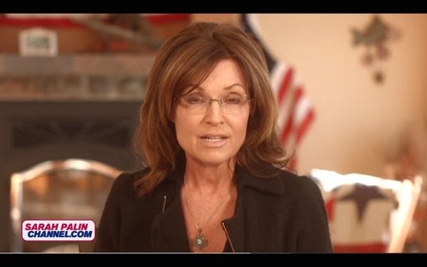 "Damn the factual torpedoes!" Palin screamed into the arctic wind. "Full snow-machine ahead!"