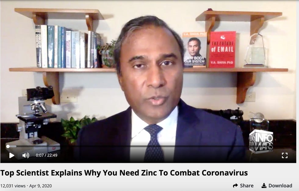And just yesterday, Jones had Dr. Shiva Ayyadurai — the doctor who claims to have invented email after it was already invented and is always trying to steal Elizabeth Warren's Senate seat — on to talk about the benefits of zinc, with yet another call to buy more of Jones's products. Weird how that works!