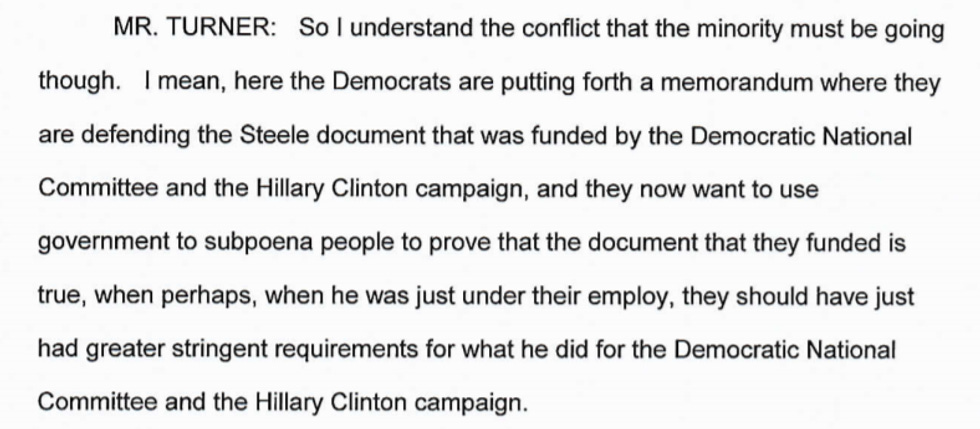 And here is GOP idiot Mike Turner of Ohio, who is not usually so mouthy, who is OBSESSED with how the Devin Nunes memo PROVED that Hillary Clinton and the DNC funded the work that led to the production of the DODGY DOSSIER. Of course, the Democrats and everybody else in the world are like, "Babydoll, everybody knows that. Stop saying it over and over again IN ALL CAPS WITH EXCLAMATION POINTS, because what you are saying is meaningless." They make Republicans mighty stupid up there in Ohio.