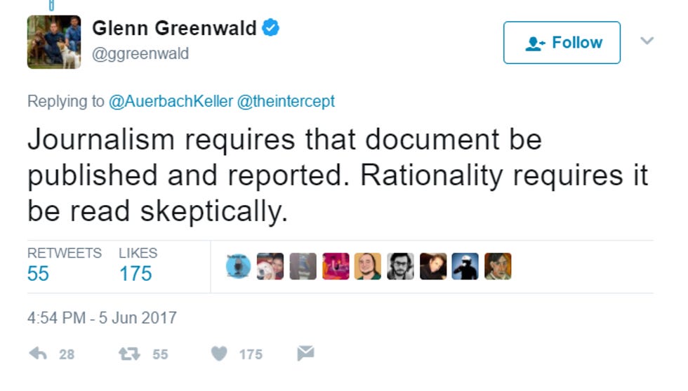 Here are Greenwald and Scahill shitting on their own reporting on Twitter: