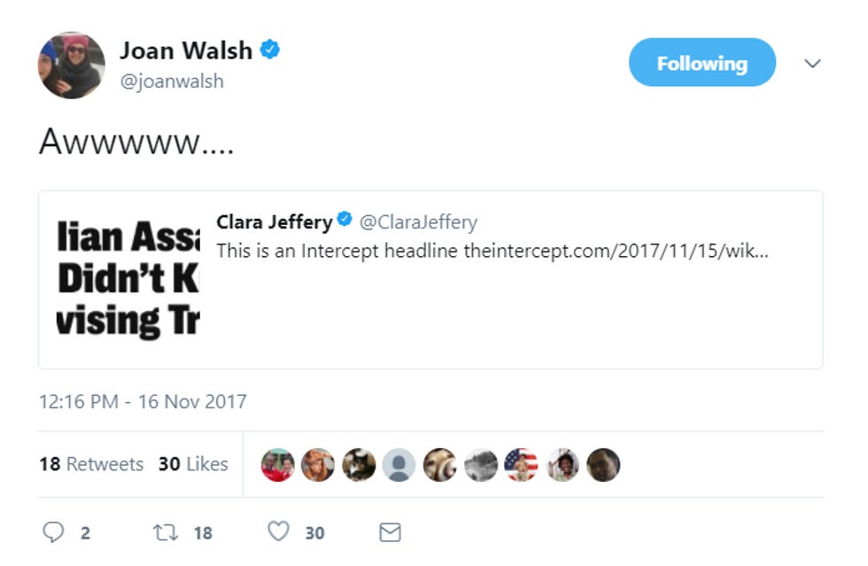 The Intercept remembers the good old days, when its love affair with Julian Assange was innocent and new, before he used to come home mysteriously late at night because he "got held up at work." The Intercept knew something was up, though, because Assange always immediately went to the shower to wash off the scent of jizz, Old Spice and dead elephant carcass The Intercept now knows he got from rubbing up on Donald Trump Jr.'s body: