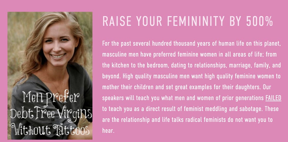 The conference plans to teach women all kinds of important things. For instance, did you know that instead of having careers and lives, we could just be baby factories?