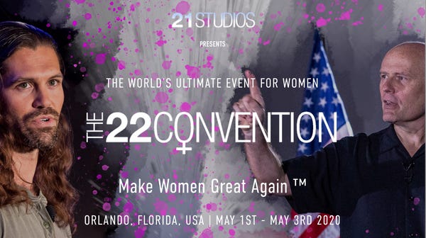 Hiding under a mask of fake progress, feminism today has become a radical assault on all forms of positive femininity - you know, the one hard coded into your DNA. Through an onslaught of anti-feminine propaganda spanning generations,women today have been pushed to act like menand DENY their own feminine nature. This has left millions of women feeling unhappy, confused, frustrated, and hopeless. At The 22 Convention, you will learn the truth that unhealthy militant feminists have been hiding from you your entire life.